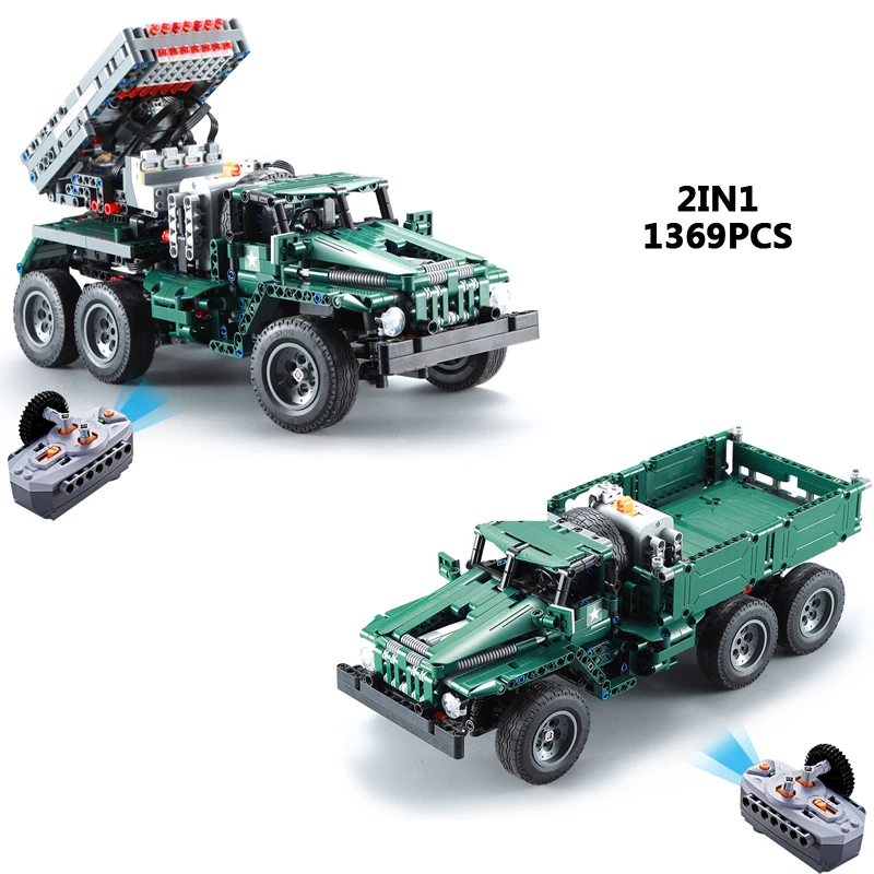 HOT Sale World war Soviet Union radio remote control BM-21 combat vehicle 2in1 brick model Ural transporter