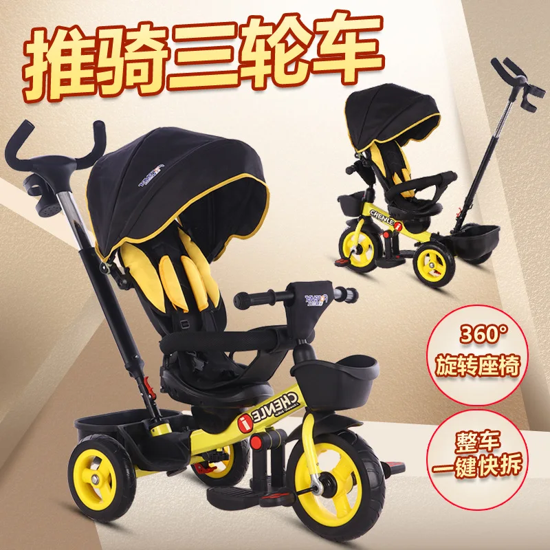 Children's tricycle children's pedal tricycle high carbon steel frame vehicle one-button quick rele