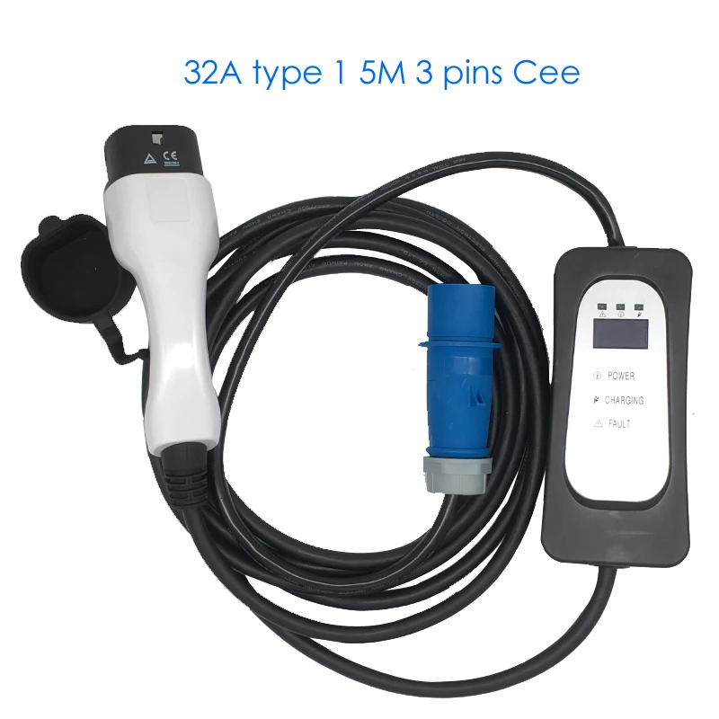 j1772 32a type 1 electric vehicle cable CEE 3 pins electric car charger station EVSE kit