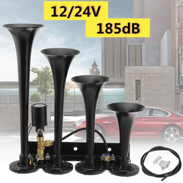 Review Top 12V / 24V 185Db 4 / Four Super Trumpet Chrome Auto Car Air Horn Set For Car Vehicle Truck Train Boa